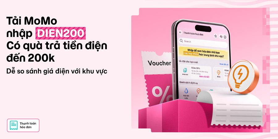 • 24/09/2025 11:09:31 Tải MoMo, nhập mã DIEN200, nhận ngay gói quà 200K thanh toán Điện_EVNSPC Từ ngày Từ ngày 05/09 - 31/12/2025, Chỉ cần tải App MoMo, nhập mã “DIEN200” rồi làm theo hướng dẫn là có quà 200.000 thanh toán Điện ngay. Gói quà làm quen dành cho bạn mới chưa từng sử dụng MoMo trước đó. XEM THÊM >>