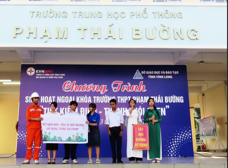 Sáng ngày 13/12/2025, Công ty Điện lực Vĩnh Long đã tổ chức chương trình sinh hoạt ngoại khóa với chủ đề “Tiết kiệm điện - thành thói quen” tại Trường THPT Phạm Thái Bường, phường Trà Vinh, tỉnh Vĩnh Long. Hơn 460 học sinh đã được tuyên truyền những nội dung cơ bản về tiết kiệm điện và an toàn điện.