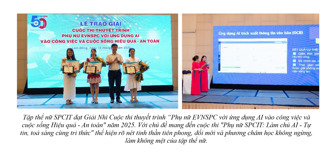 Tập thể nữ CBCNV Công ty Công nghệ thông tin Điện lực miền Nam (SPCIT) - dù chỉ chiếm 28% tổng số lao động, nhưng đã trở thành biểu tượng của sự đổi mới sáng tạo, thích ứng liên tục và tinh thần tiên phong ứng dụng công nghệ mới. Với phương châm “học không ngừng, làm không mệt”, tập thể ấy không chỉ hoàn thành xuất sắc nhiệm vụ chuyên môn mà còn toả sáng qua từng hoạt động đoàn thể, kết nối yêu thương - lan tỏa hình ảnh người phụ nữ ngành điện mang tinh thần “Xanh” trong kỷ nguyên số.