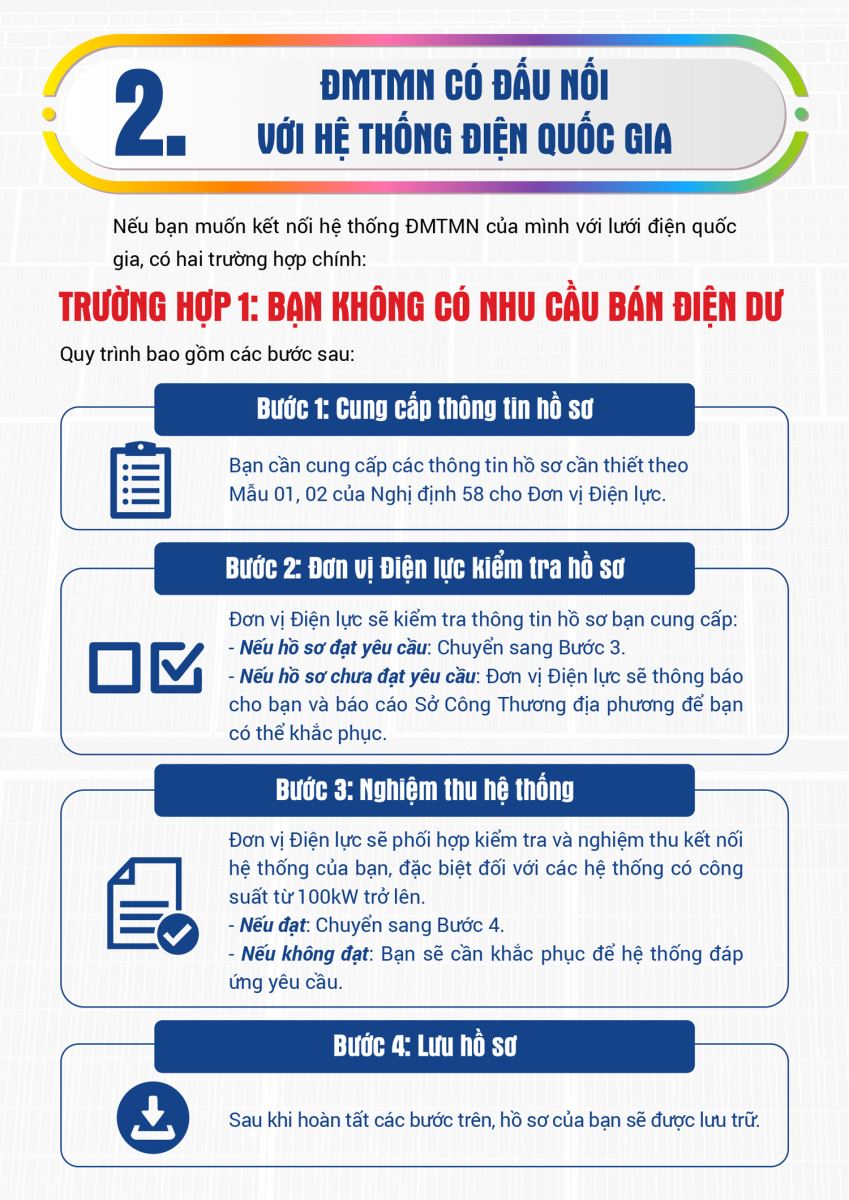 III. Trình tự thực hiện với nguồn ĐMTMN có đấu nối với hệ thống điện Quốc gia và không bán điện dư: