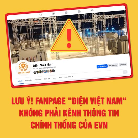 Trang fanpage có tên “Điện Việt Nam” KHÔNG phải là kênh truyền thông của EVN. Tuy nhiên, trang này thường xuyên đăng tải các nội dung lấy trái phép từ các kênh thông tin của EVN, dẫn tới nguy cơ một số độc giả có thể nhầm lẫn đây là kênh của EVN.