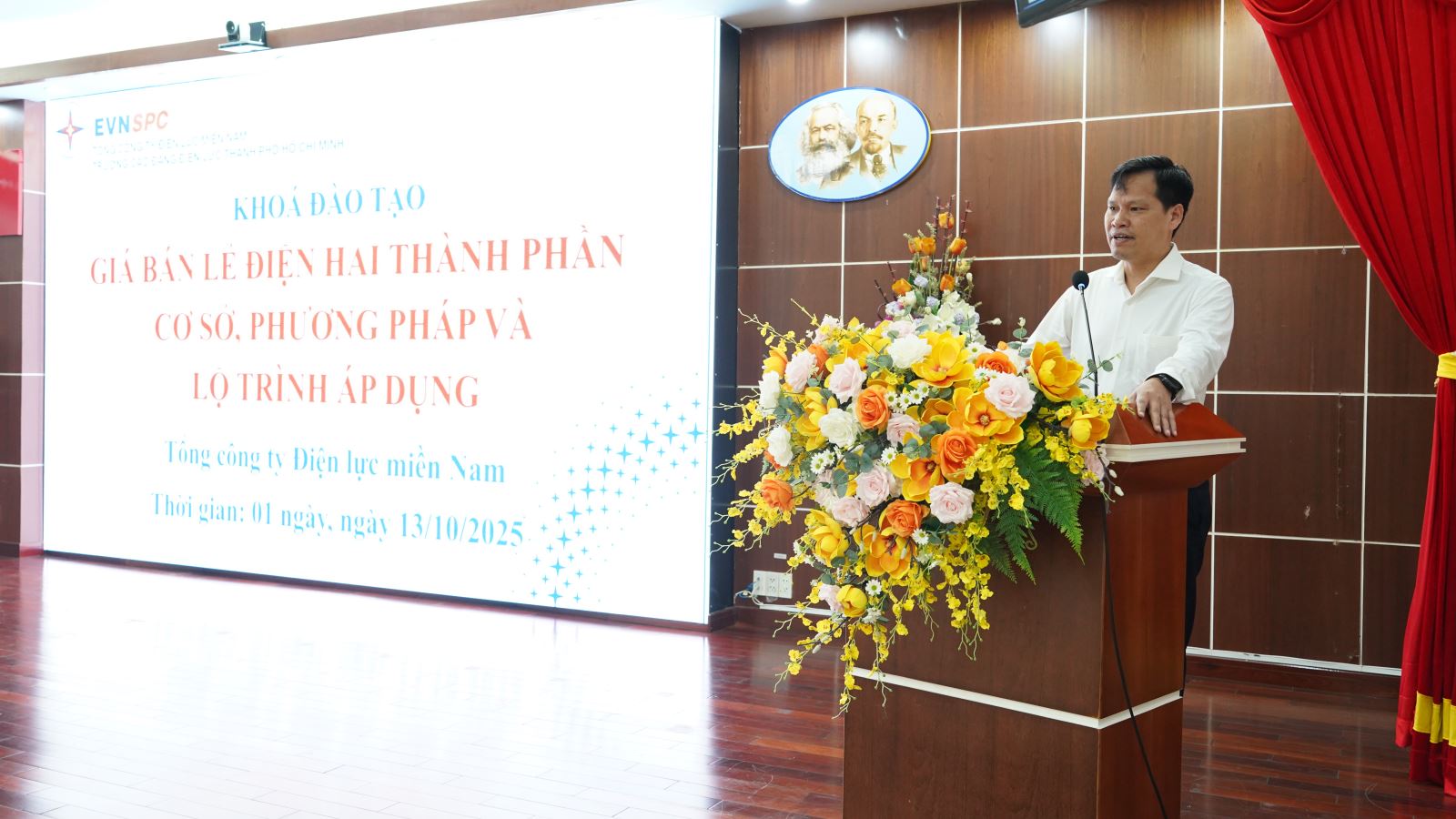 Ngày 14 tháng 10 năm 2025, Tổng công ty Điện lực miền Nam (EVNSPC) tổ chức khóa đào tạo chuyên đề “Giá bán lẻ điện hai thành phần: Cơ sở, phương pháp và lộ trình áp dụng”, khóa đào tạo được tổ chức theo hình thức trực tiếp kết hợp trực tuyến, kết nối đến hơn 2.000 CBCNV thuộc các Công ty Điện lực, Đội Quản lý Điện trực thuộc nhằm trang bị kiến thức, nâng cao nhận thức cho đội ngũ cán bộ, công nhân viên về cơ chế giá điện mới chuẩn bị được thử nghiệm triển khai.