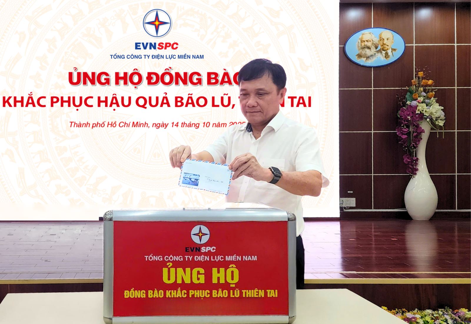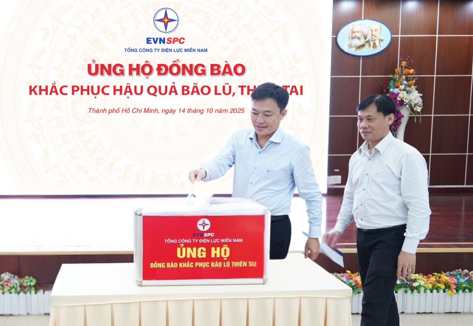 Đây là hoạt động ủng hộ thêm của CNVCLĐ EVNSPC. Trước đó, ngày 08/10/2025, Tổng Giám đốc và Công đoàn Tổng công ty đã ban hành Chỉ thị liên tịch số 9441/CTLT-EVNSPC-CĐ phát động mỗi CNVCLĐ đóng góp ít nhất 01 ngày lương ủng hộ đồng bào khắc phục bão lũ thiên tai và giúp đỡ nhân dân Cuba.