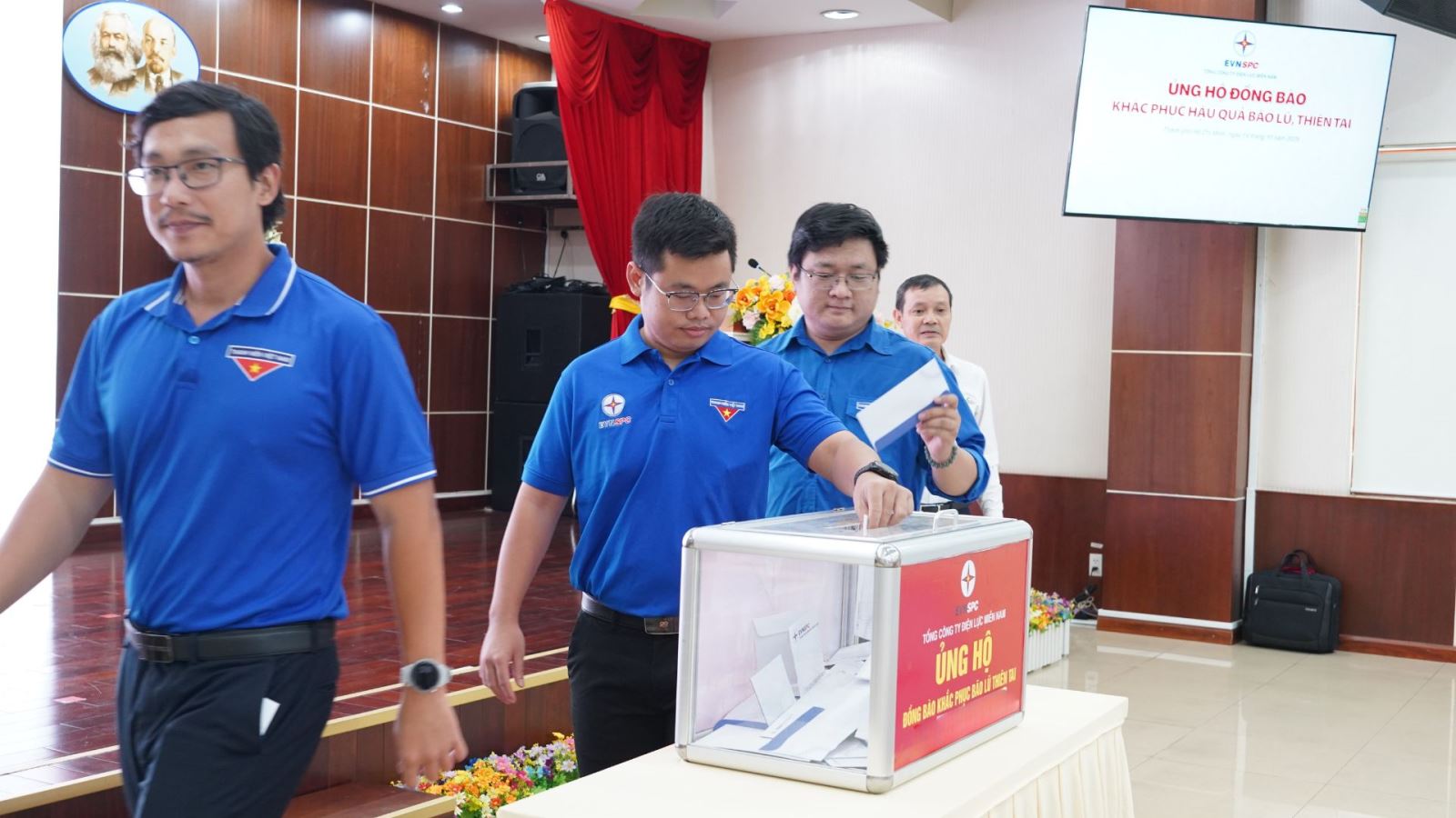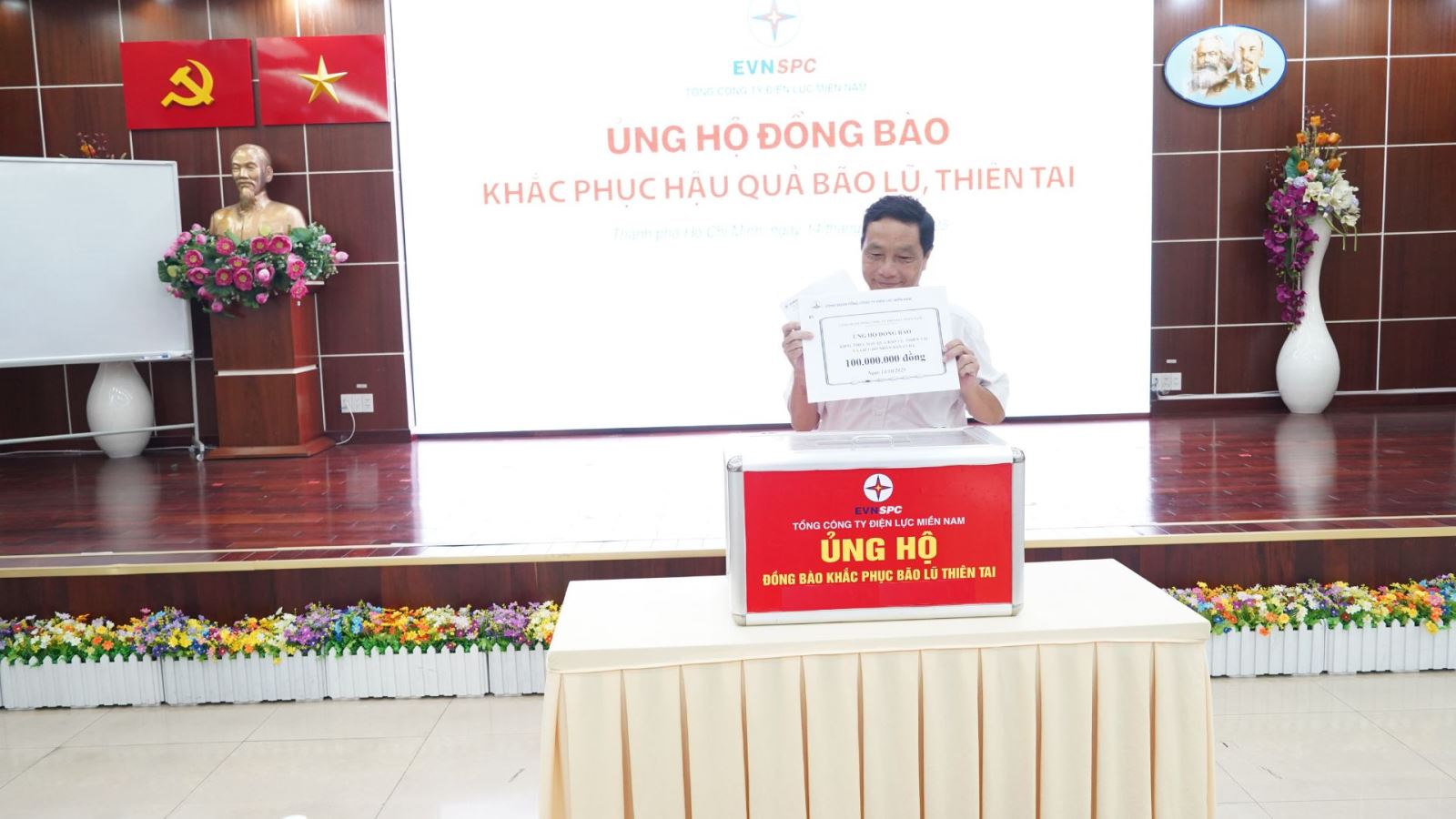 Hưởng ứng lời kêu gọi của Ủy ban Trung ương Mặt trận Tổ quốc Việt Nam, đồng thời phát huy truyền thống tốt đẹp “Tương thân, thương ái của dân tộc”, với tinh thần “Tự nguyện - Tùy tâm”, “Một miếng khi đói bằng một gói khi no”, đông đảo CNVCLĐ của EVNSPC đã chung tay chia sẻ với đồng bào bị ảnh hưởng bởi thiên tai và hy vọng với những đóng góp nhỏ bé sẽ phần nào cùng với người dân sớm vượt qua khó khăn.