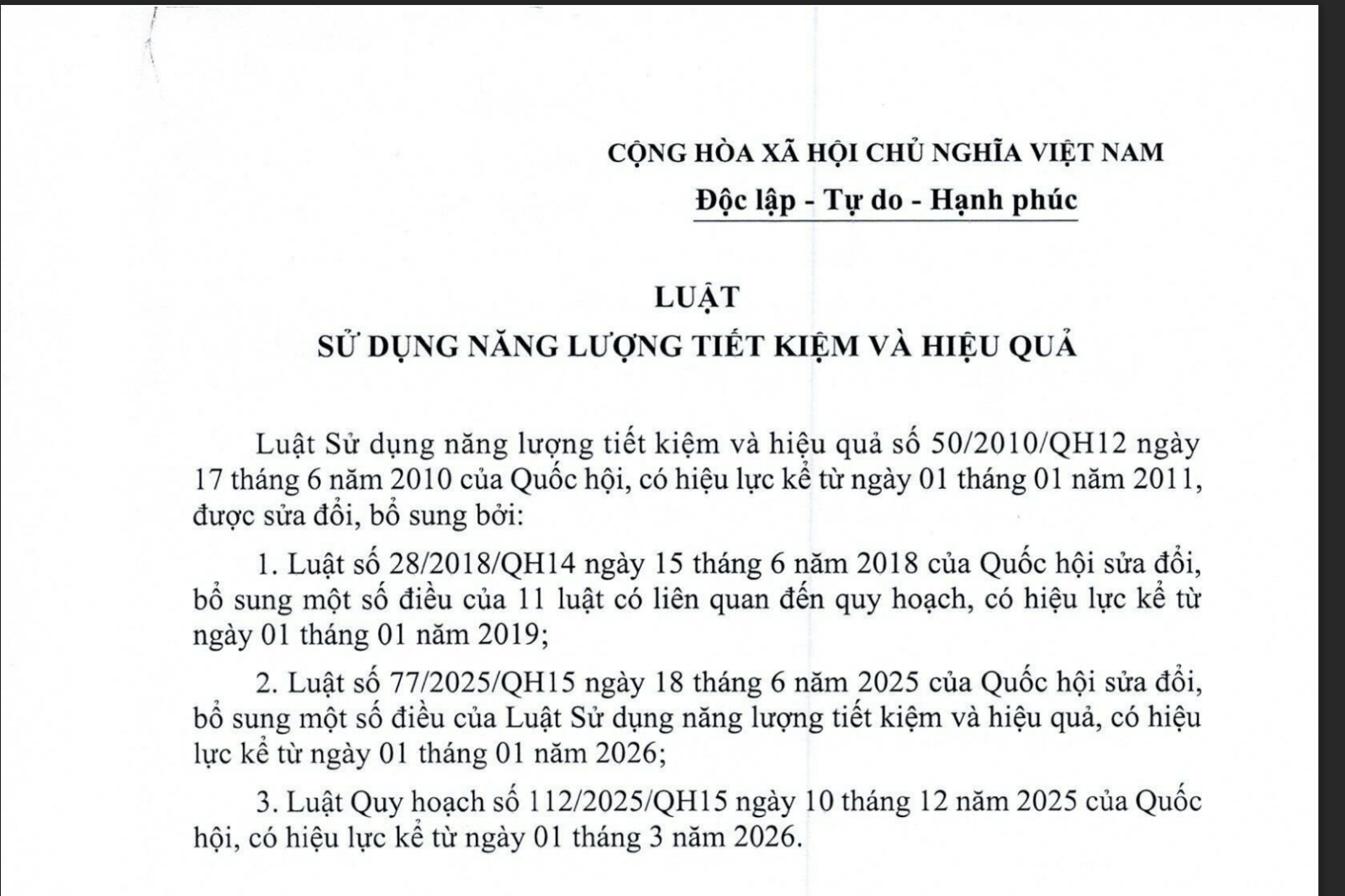 Văn bản hợp nhất Luật sử dụng năng lượng tiết kiệm và hiệu quả