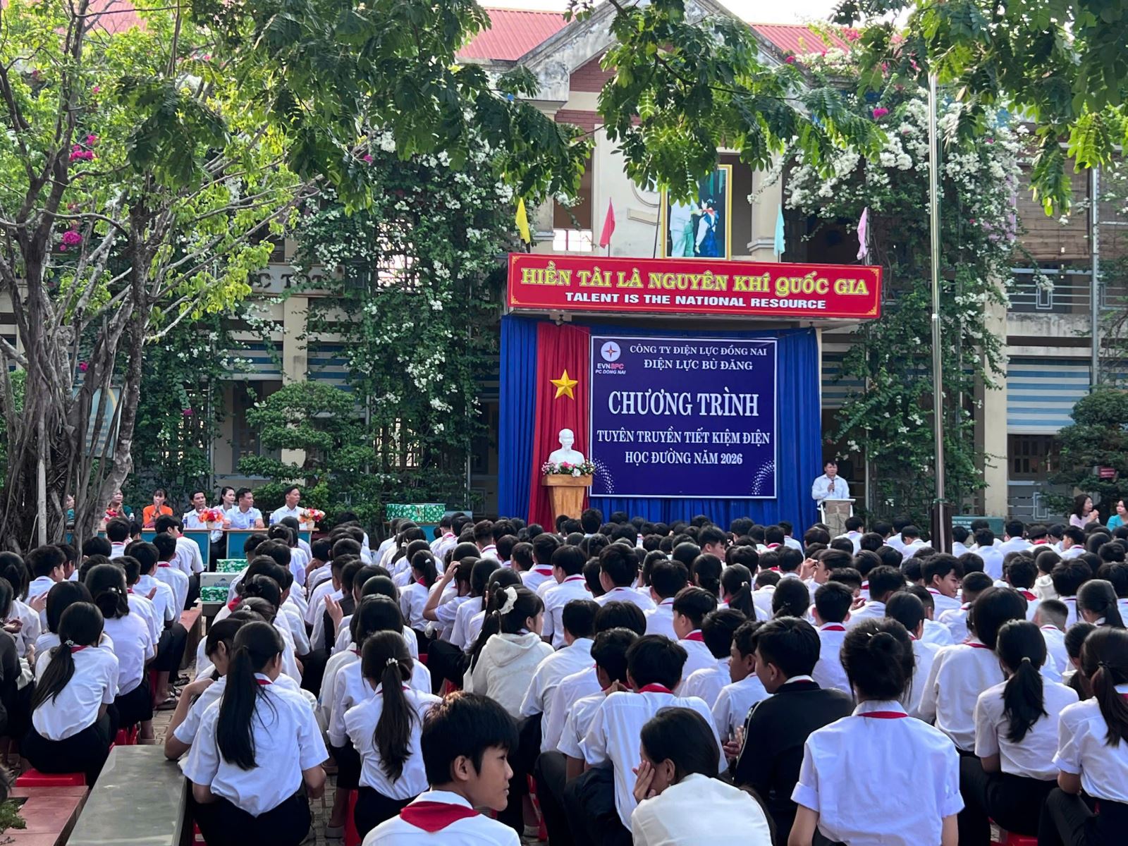 Điện lực Bù Đăng - Công ty Điện lực Đồng Nai vừa tổ chức chương trình tuyên truyền với chủ đề “Tiết kiệm năng lượng điện vì tương lai xanh” tại Trường THCS Phan Bội Châu, thu hút hơn 1.400 học sinh và giáo viên tham gia.