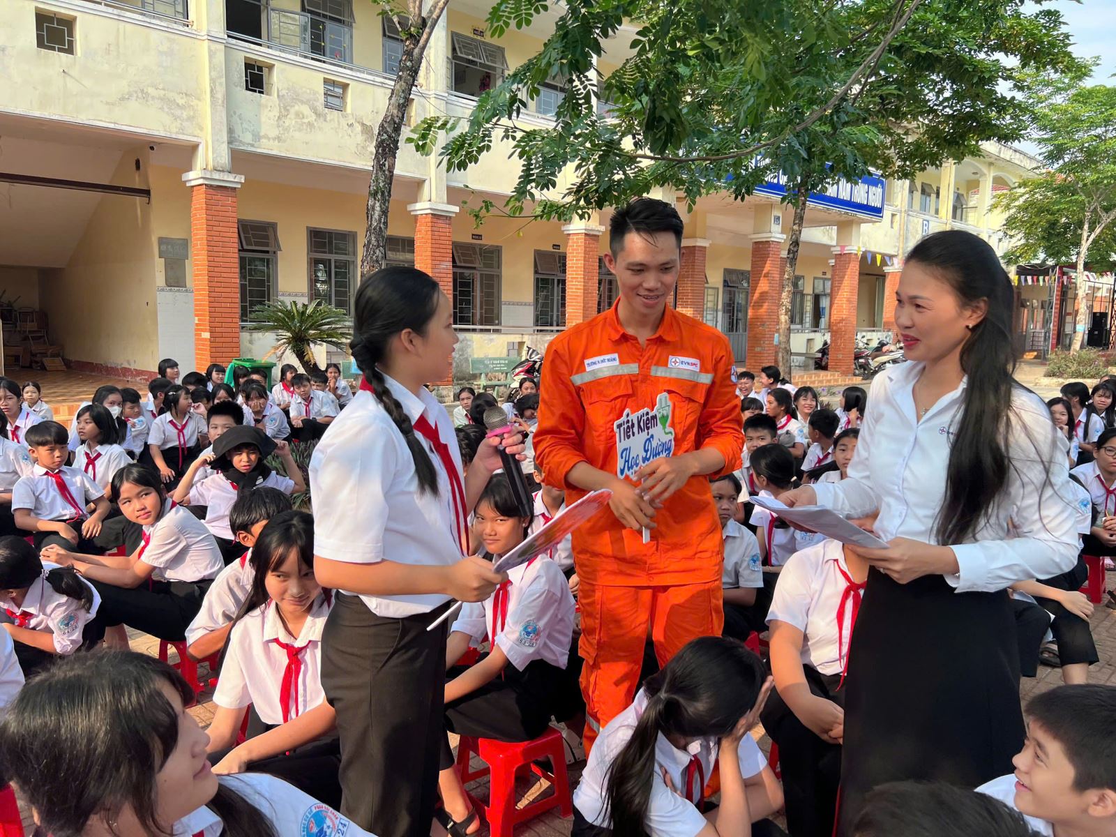 Điểm nhấn của chương trình là phần giao lưu hỏi – đáp kiến thức về tiết kiệm điện và an toàn điện, tạo không khí sôi nổi và hào hứng cho các em học sinh. Với 20 câu hỏi thực tế, ban tổ chức đã trao tặng 20 phần quà cho các học sinh trả lời đúng, góp phần khích lệ tinh thần tìm hiểu kiến thức và nâng cao ý thức sử dụng điện tiết kiệm.