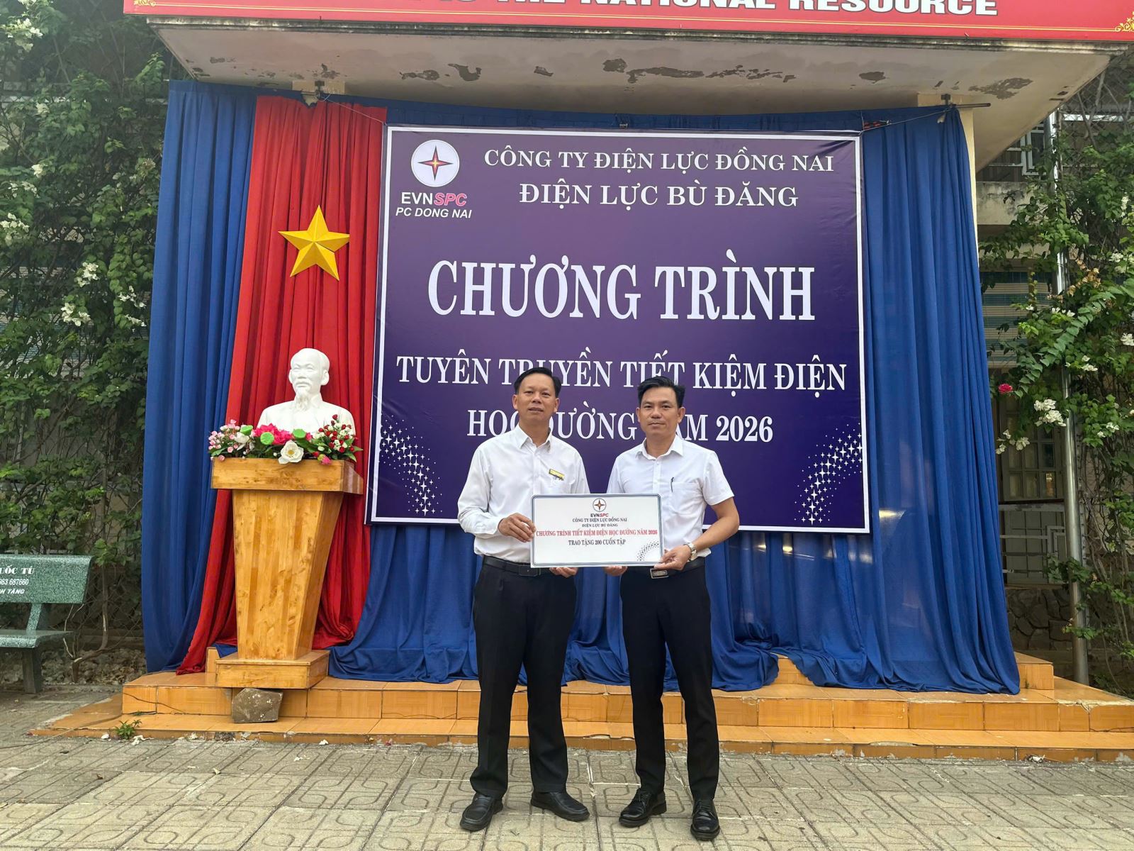 Nhân dịp này, Điện lực cũng kết hợp trao tặng 200 quyển vở cho nhà trường nhằm hỗ trợ quỹ khen thưởng, động viên các em học sinh nỗ lực học tập và tích cực tham gia các hoạt động ý nghĩa.