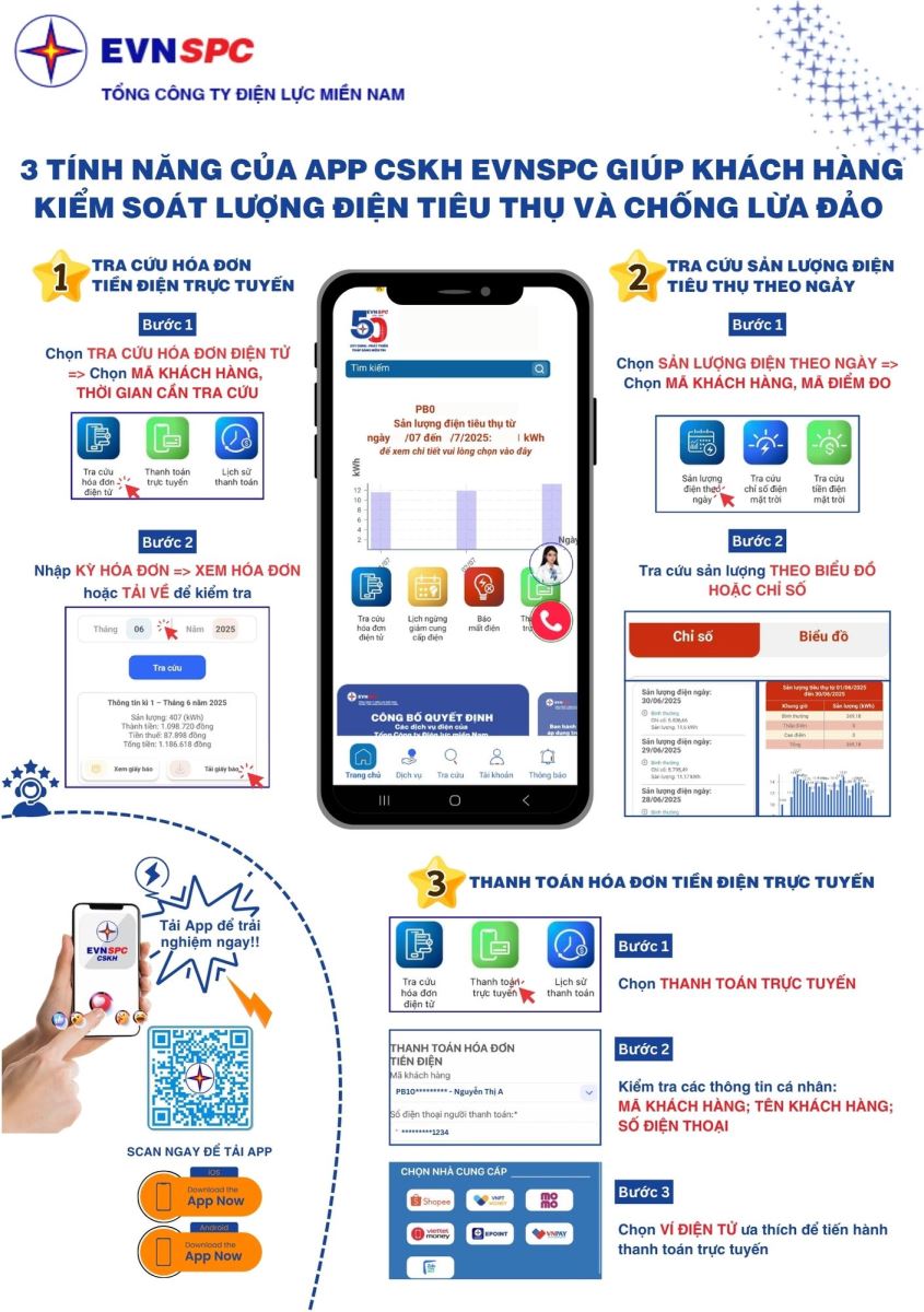 EVNSPC khuyến khích khách hàng kiểm soát mức sử dụng điện hằng ngày qua App CSKH