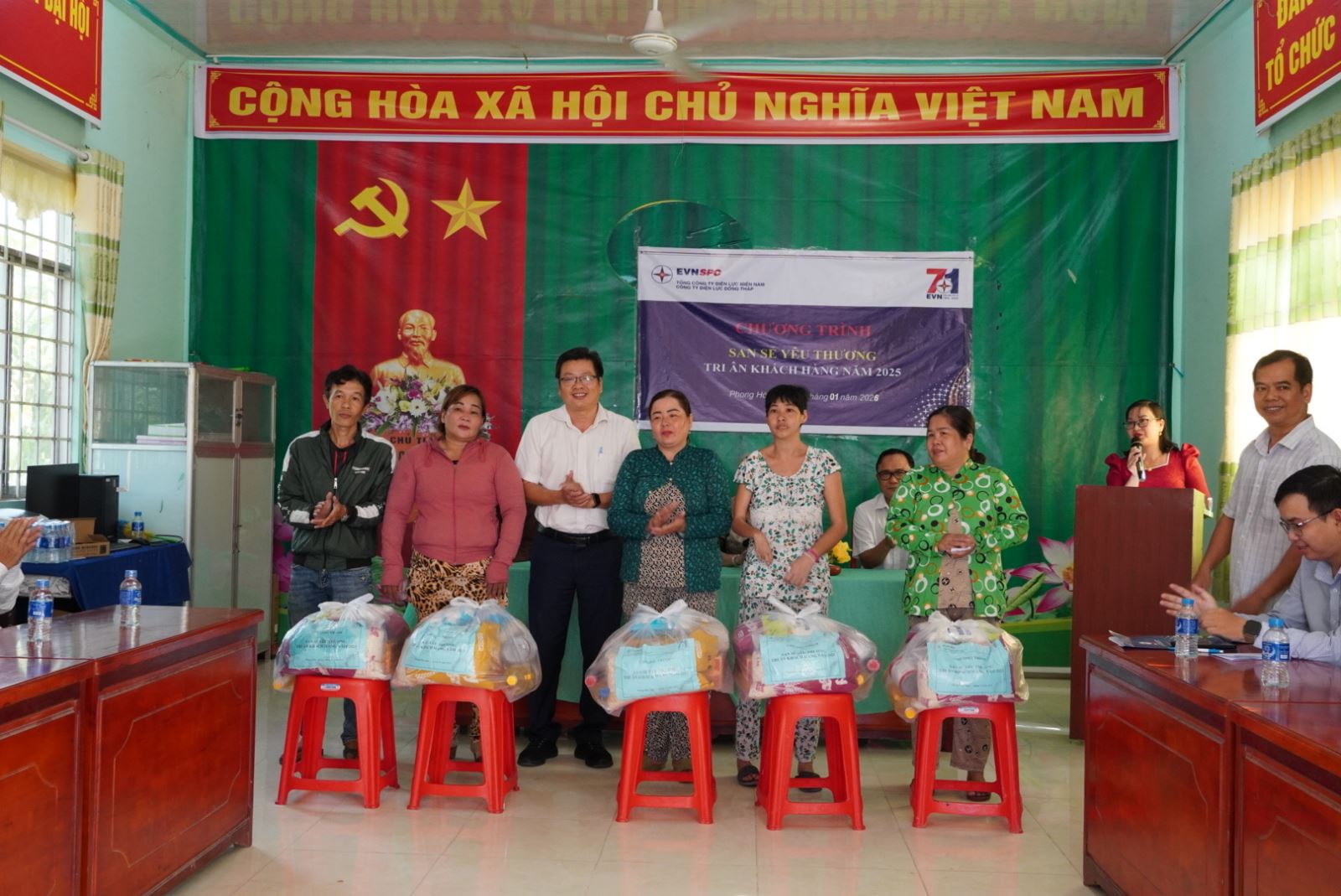 Buổi lễ vinh dự có sự tham gia của bà Nguyễn Thị Bích Thuận – Bí thư Đảng ủy xã Phong Hòa, tỉnh Đồng Tháp; Ông Nguyễn Chí Thanh – Phó Giám đốc Công ty Điện lực Đồng Tháp, Ông Phạm Hữu Linh Khoa – Bí thư Đoàn thanh niên Công ty, cùng đại diện Đội Quản lý điện Lai Vung, lãnh đạo UBND và các ban ngành đoàn thể xã Phong Hòa.