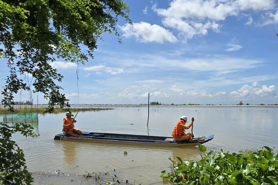 Thời gian qua, trên địa bàn huyện xảy ra 26 điểm sạt lở đất bờ sông, kênh, làn ảnh hưởng đến 12 trụ điện và 02 trạm biến áp. Ngoài ra, vào tối ngày 11-9-2025, mưa giông, lốc xoáy làm 5 căn nhà tại An Phú bị sập và tốc mái, ước thiệt hại trên 720 triệu đồng. Đội triển khai kế hoạch “4 tại chỗ” – chỉ huy tại chỗ, lực lượng tại chỗ, vật tư tại chỗ, phương tiện tại chỗ – để kịp thời ứng phó, đảm bảo an toàn tuyệt đối cho con người và thiết bị trong mọi tình huống. Phối hợp với Ban Chỉ huy Phòng thủ dân sự 05 xã: Phú Hữu, Khánh Bình, Nhơn Hội, An Phú, Vĩnh Hậu, trong công tác thống kê, kiểm đếm các vị trí xảy ra sạt lở, đồng thời huy động lực lượng gia cố, duy tu các vị trí có nguy cơ xảy ra sự cố. Cập nhật thường xuyên bản đồ vùng ngập, bản tin dự báo cảnh báo thủy văn, biểu đồ mực nước cao nhất ngày mùa lũ, bố trí lực lượng ứng trực 24/24, kiểm tra các tuyến đường dây, trạm biến áp, đặc biệt là khu vực phụ tải lới, trọng điểm như cơ quan nhà nước, khu dân cư, trường học, chợ và vùng nuôi trồng thủy sản.