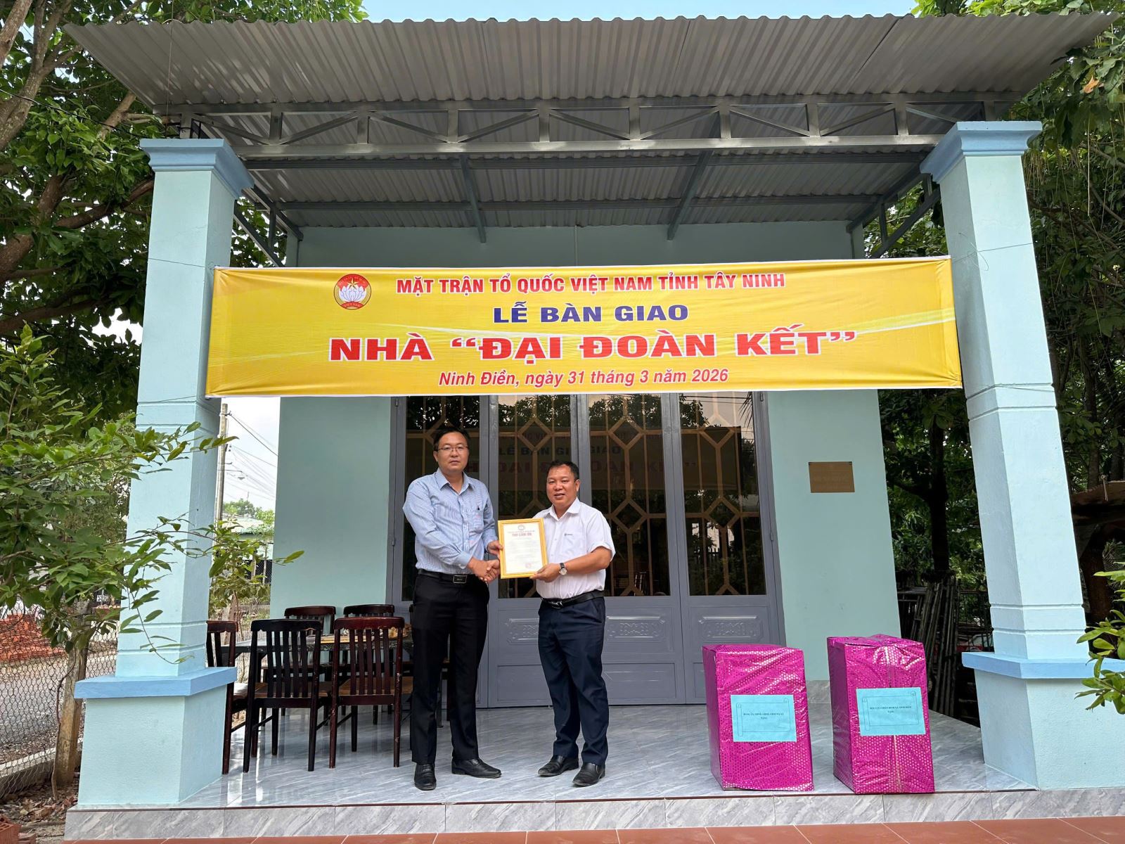 Sáng ngày 31/3/2026, Điện lực Thái Bình - Công ty Điện lực Tây Ninh (PC Tây Ninh) đã phối hợp với Ủy ban MTTQ Việt Nam xã Ninh Điền, tỉnh Tây Ninh tổ chức lễ bàn giao nhà “Đại đoàn kết” cho hộ gia đình có hoàn cảnh đặc biệt khó khăn về nhà ở tại địa phương.